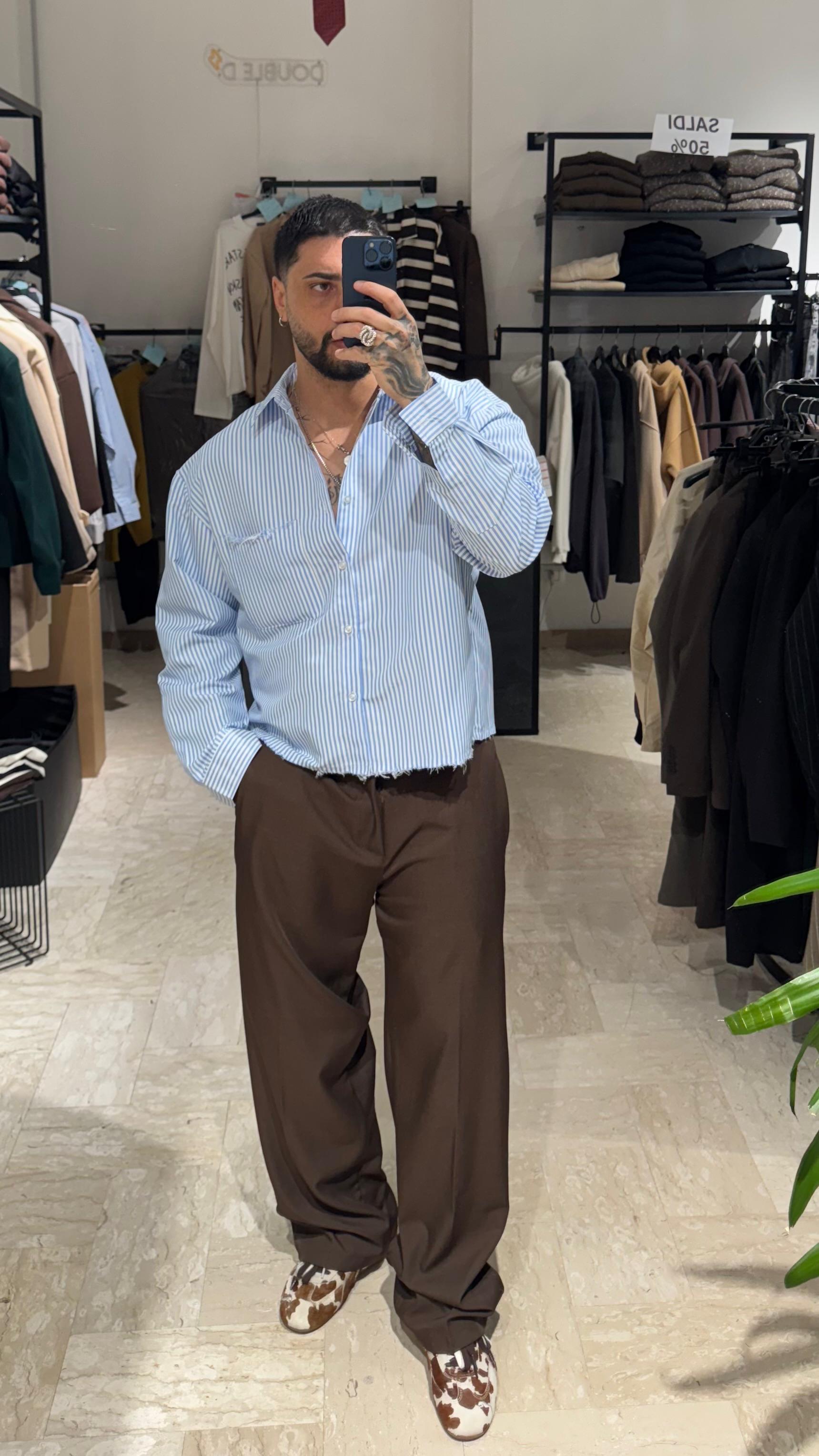 CAMICIA RIGHE AZZURRA CROP/OVER