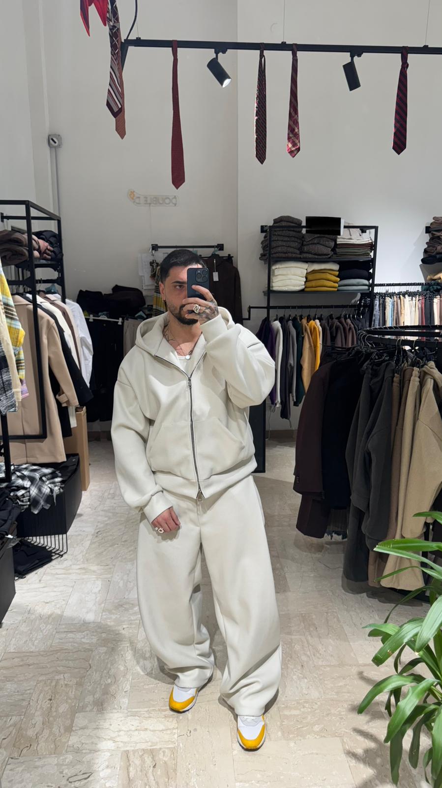 COMPOSTO DA UNA FELPA CROP/OVER CON DOPPIA ZIP E CAPPUCCIO, PANTATUTA FONDO LARGO CON DOPPIA PENCE LATERALE