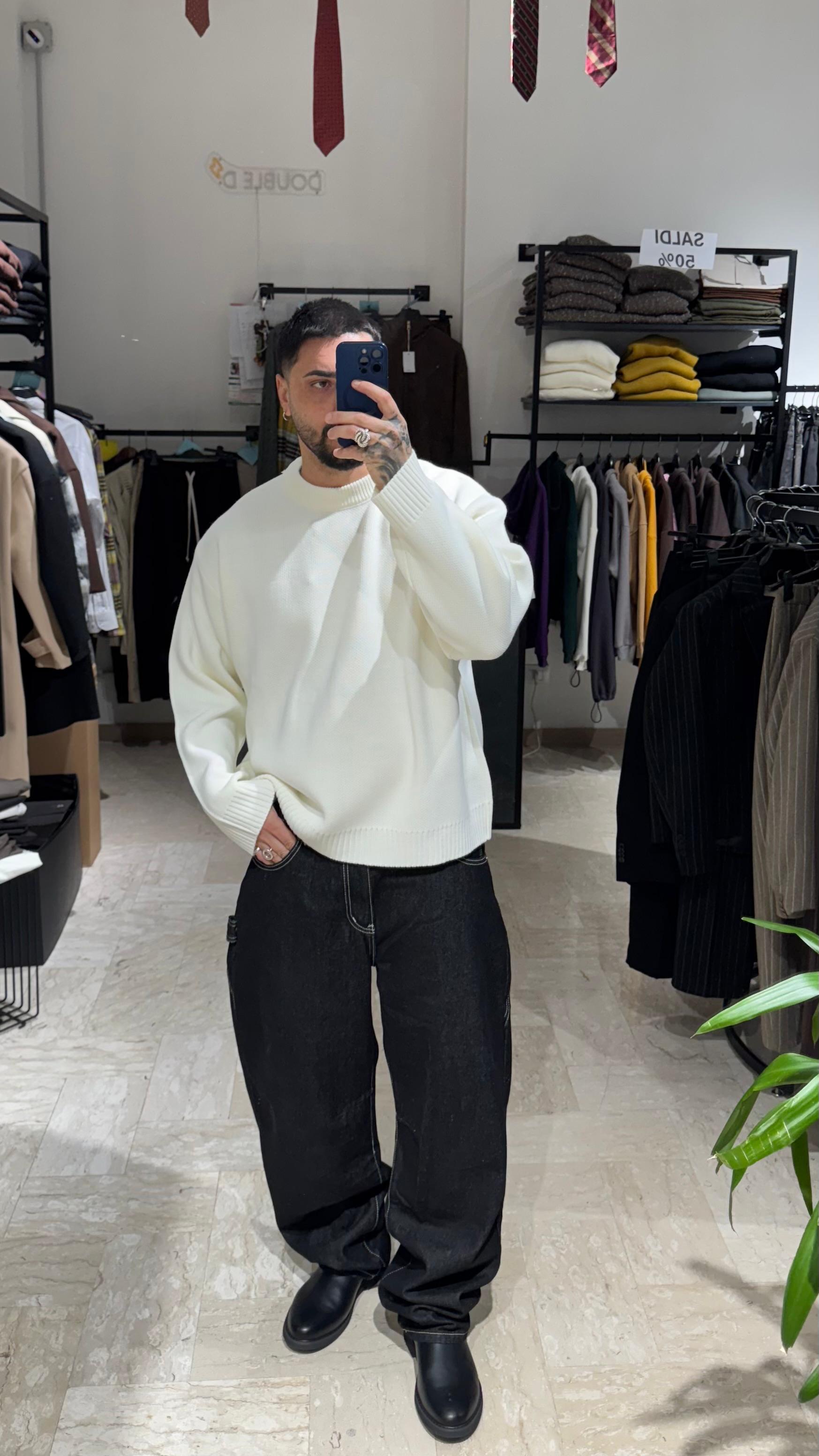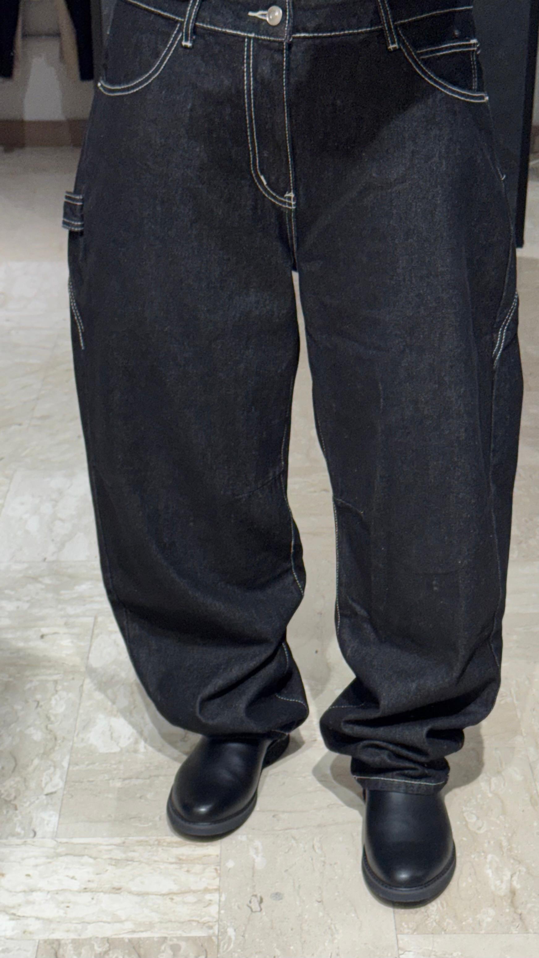 DENIM BALLOON NERO CON CUCITURE A CONTRASTO